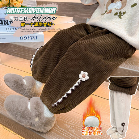 1*7下载视频“A316侧边花朵加绒休闲裤”