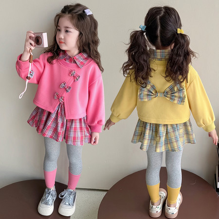 c*0下载视频“B1-2516卡通印花撞色格子套装”